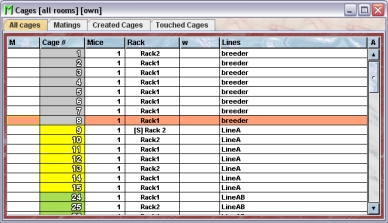 In this tab you see a table with the mice which are contained in the selected cages.