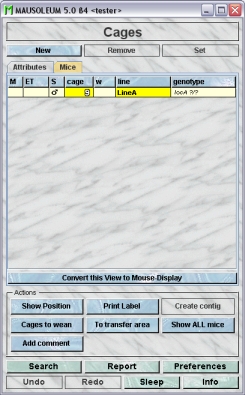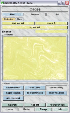 - Add comment lets you add a comment to one or more cages at once. In addition you will be asked whether the comment you typed in should also be appended to all the mice which are in the selected cages.