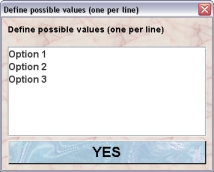 You click on the "Specify values"-button and a dialog opens where you can type in the potential results of this experiment. Each line in this text area will specify one potential result.