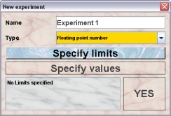 For the "Floating point number" experiments you have to specify lower and upper limit of the expected results.