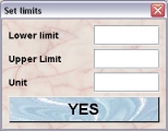 You click on the "Specify limits"-button and a dialog opens where you can set lower and upper limit of the expected results for the new experiment. You can also specify a unit for the values.