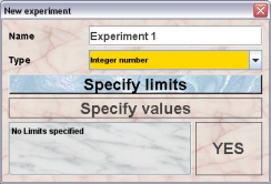For the "Integer number" experiments you have to specify lower and upper limit of the expected results.