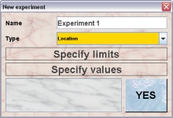 First you will specify the name for the experiment. Then you have to specify the type of results you expect from the new experiment. You select it from the selection field below the name field.