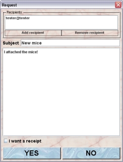 If you decide to export your mice using the Mausoleum mail the mail dialog appears where you specify the recipients, the subject and the text of your mail. Clicking "Yes" wil start the export.