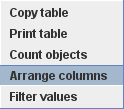 As in all other Mausoleum tables you can select the content you want to see in this table by right mouse click within the table and selecting Arrange columns in the context menu: