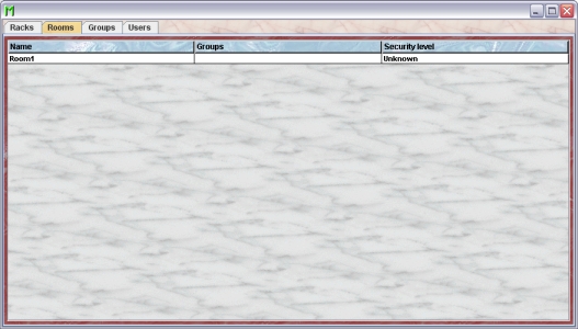Upon selection of a room from the list the rooms inspector will show the name the security level and a description of the room. The racks placed in the room are listed.