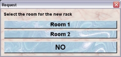 Clicking YES brings up the next dialog which asks for the room where the new rack is located. You have the choice between the defined rooms of the service unit. This choice will be presented as dropdown list or as buttons if less than 5 items are available.