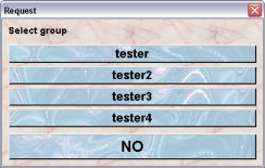 In the following dialog you have the choice between the groups which have no access to the selected rack at the moment. This choice will be presented as dropdown list or as buttons if less than 5 items are available.