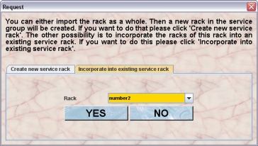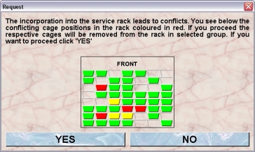 If you proceed by clicking YES the cages of the rack in the selected group which are at spots already occupied in the rack of the service group will be removed from the rack and you will find them afterwards in the transfer area.