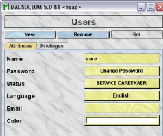 In the service group you also have defined users as in the other groups in your Mausoleum installation. But the users roles in this group are quite restricted. In this group there only two possible kinds of users: