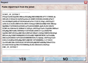 In this chapter we will focus on the other possibility of mouse exchange using regular email. In order to import the data the email sent to you has to contain a text with the encrypted data. This text fragment will look like this: