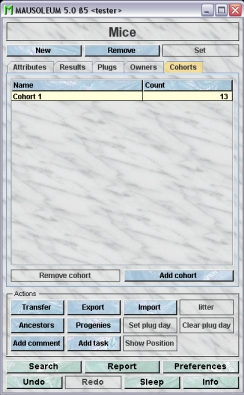 - Cohorts: This table shows the actual mouse cohorts defined in this group.