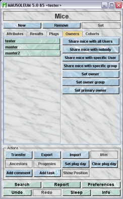 If you own the selected mice or are the GURU of the group you can modiify the ownership of the selected mice by clicking one of the buittons on the right side of the "Owners"-tab. You have these options.