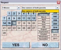 The date you specify in the calendar panel in the lower part of the dialog is not the brithday of the mice. This can be set later on. It is the date where you imported the mice into your system. So this should be usually set to date when you physically imported the mice in your mouse room.