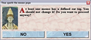 If the sex is already defined for at least one of the select mice and you are going to change it you will get this mouse pope alert: