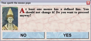 You can also delete the line information for the selected mice by selecting "no line" in the selection field of the dialog. If you do so of course the genotype is also removed. If you want to change a defined line of a mouse you will get this mouse pope alert: