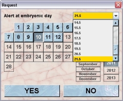 - Set plug day: This opens a calendar where the plugdate of a selected group of females can be indicated. It is possible to activate an alert on a number of days after observation of the plug: