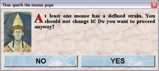 If you want to change a defined strain of a mouse you will get this mouse pope alert: