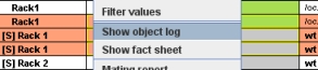 The window with fact sheets and object logs will open and the object log for the selected objects is shown in a new tab.