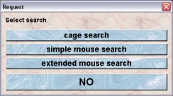 You can search cages according to several criteria. Each of these searches is started by clicking one of the six big buttons of this dailog.