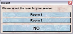 There is a big difference to the login procedure of users from regular groups. After login in regular groups all the active objects are fetched from the server and used by the client. This is not possible for the service group because the service group has no mice, cages and so on. Rather the caretaker of the service group has to use the objects from different groups. This would lead to a big problem because this would mean that in this case all objects from all groups would have to be transferred to the client. Therefore Mausoleum uses a different approach. The caretaker has to specify during login which room will be used for this session. This is done using a dialog offering the choice between the rooms which are defined in the service group at the moment. This choice will be presented as dropdown list or as buttons if less than 5 items are available.
