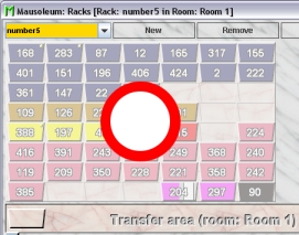 Another restriction is that a cage from one group can be dragged only to a rack which is available for this group. This can happen if more than one rack is present in the room selected for the session and the group of the cage hasn’t got access to all of them. If the caretaker of the service group now tries to drag the cage or mice to a rack which is not available for the respective group, the display of the rack changes indicating that dragging isn’t possible: