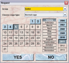 Creating new cages: The service group also doesn’t contain any cages. All cages belong to one of the regular groups which have access to the room of the actual session. Therefore also if the caretaker of the service group creates new cages the group to which these cages belong have to be specified. The dialog has therefore a selection field on top where the group has to be chosen.