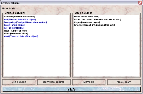 If you proceed by clicking YES the cages of the rack in the selected group which are at spots already occupied in the rack of the service group will be removed from the rack and you will find them afterwards in the transfer area.