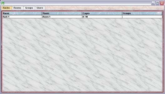 In the shown example the name of the rack, the room in which the rack is in, the number of cages in the rack and number of spots in the rack and the name of the groups having access to this rack will be shown in the rack table.