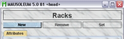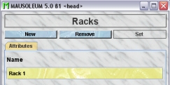 If you have defined rooms within the service unit you can start defining the racks which are located in these rooms. Racks in Mausoleum are assumed to have a regular grid with spots each of them capable of containing exactly one cage (or double cage). Racks can be either single- or double sided.