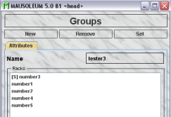 After selecting Groups in in the top element of the Inspector window the group table appears showing the names of the defined groups in this Mausoleum installation.