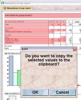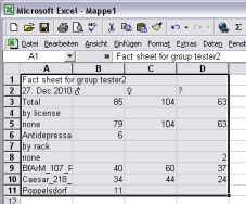 The reports can be printed and the numbers can be transferred to other programs (e. g. Excel) for further analysis. To select data from fact sheets to the system clipboard you just drag the mouse with pressed left mouse button over the data you want to copy.