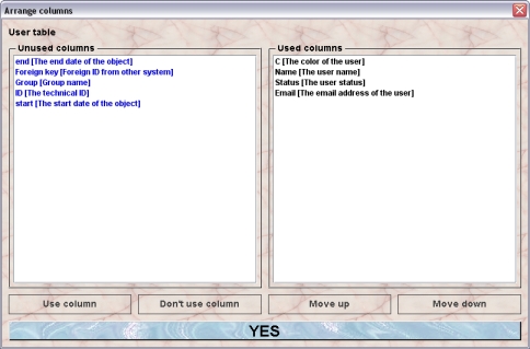 As in all other Mausoleum tables you can select the content you want to see in this table by right mouse click within the table and selecting Arrange columns in the context menu: