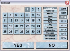 Enter the name or official License-ID and the proper name of the official license holder. You set the dates by clicking the little "..."-button at the right side of the respective field. You will get a dialog for selecting the date: