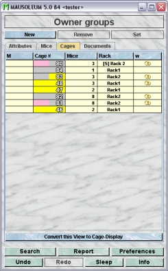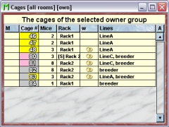 In this tab you see a table with the cages which contain mice which are owned by one of the selected owner groups.