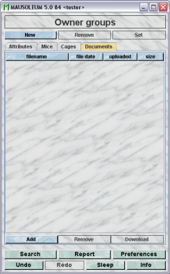 Mice can be owned by users who are either MASTER, EXTERNAL, STUDENT or GURU. If some members of your lab share mice it can be a bit unconvenient to add all of these users independently as owners of the respective mice. Even worse when one of those people leaves the lab. Then you have to remove this member manually from the owner list of the shared mice. To make these thing easier there are the owner groups which contain an arbitrary number of users who have the privilege to own mice. You can set such a owner group as owner of mice just like a normal user. When Mausoleum tries to figure out whether the logged in user might alter the mouse it first checks whether the user directly owns this mouse and if not it looks whether the user is member of a group listed as owner of this mouse. If members are added to or removed from an owner group this mechanism automatically ensures that the permission changes immediately for all mice owned by the respective owner group.