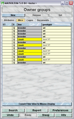 In this tab you see a table with the mice which are owned by one of the selected owner groups.